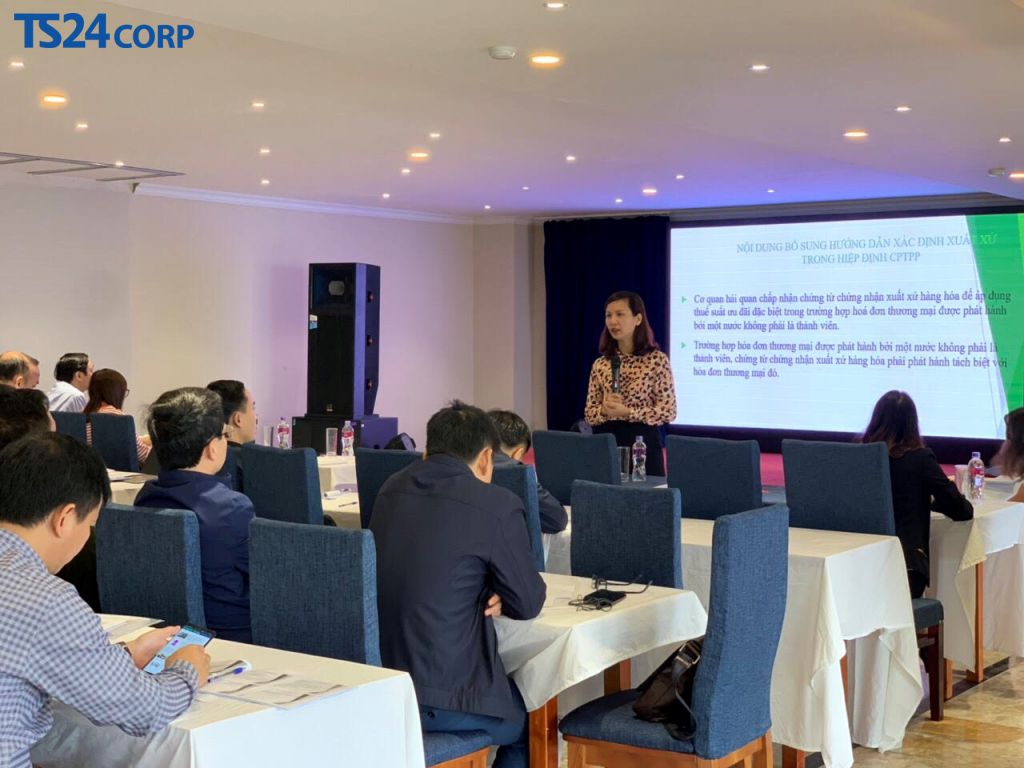 Tại hội nghị, đại diện Cục Giám sát quản lý về hải quan đã thông tin cụ thể về các điểm mới cần lưu ý tại Thông tư 62/2019/TT-BTC sửa đổi, bổ sung Thông tư 38/2019/TT-BTC, trong đó, tập trung vào các nội dung sửa đổi, bổ sung một số điều của Thông tư 38/2018/TT-BTC (Các trường hợp khác biệt nhỏ không ảnh hưởng đến tính hợp lệ của chứng từ chứng nhận xuất xứ hàng hóa; Từ chối chứng từ chứng nhận xuất xứ hàng hóa); bổ sung hướng dẫn kiểm tra xác định xuất xứ trong khuôn khổ Hiệp định CPTPP; sửa đổi, bổ sung Phụ lục II Danh mục hàng hóa NK phải nộp chứng từ chứng nhận xuất xứ hàng hóa cho cơ quan Hải quan.