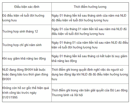 Xác định thời điểm hưởng lương hưu