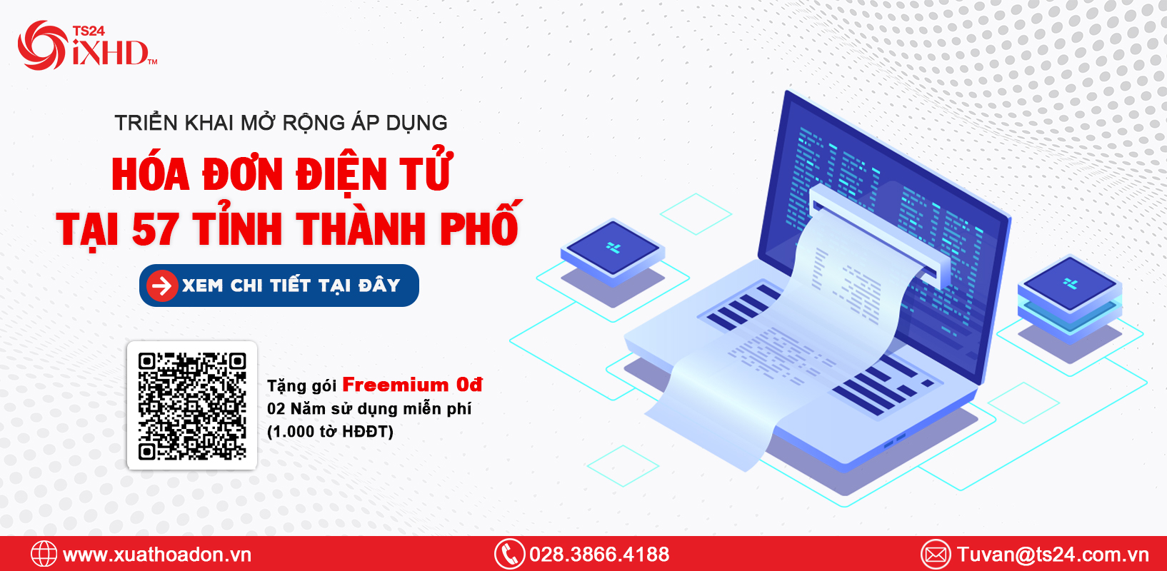 🎁 1.000 gói dịch vụ hóa đơn điện tử iXHD Freemium 0đ (tối đa 1000 hóa đơn) cho các doanh nghiệp chưa sử dụng hóa đơn điện tử bắt đầu đăng ký sử dụng hóa đơn điện tử. (Đăng ký nhận ưu đãi ngay)